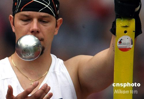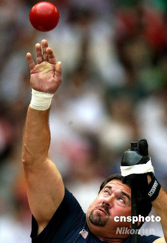 圖:美國鉛球選手觸摸“紅日”