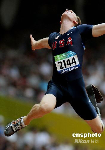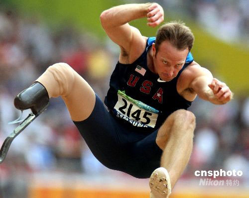 北京殘奧會田徑:美國選手跳遠中展示“功夫”