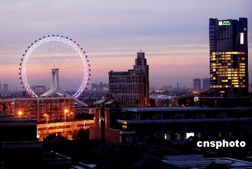 圖:晚霞映襯“天津之眼”