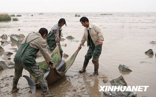 圖:3位漁民助擱淺江豚重回大海
