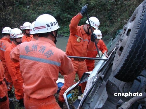 圖:貴州一貨車失控飛下50米山谷