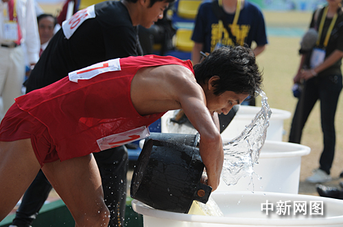 圖:農(nóng)運(yùn)會(huì)選手“抗旱提水”忙