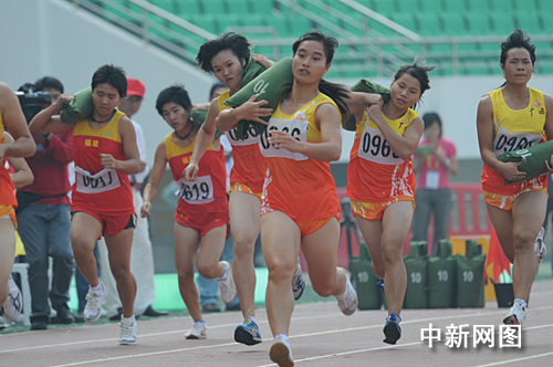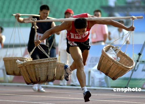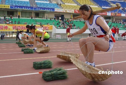 圖:農(nóng)運(yùn)會(huì)賽場上運(yùn)動(dòng)員“忙運(yùn)糧”