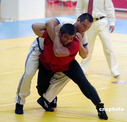 圖:農(nóng)運(yùn)會(huì)摔跤賽場激戰(zhàn)正酣