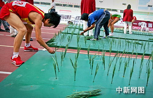 圖:農(nóng)運(yùn)會(huì)插秧比賽技巧多