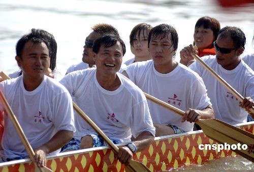 圖:來自臺(tái)灣的龍舟隊(duì)歡樂參賽農(nóng)運(yùn)會(huì)