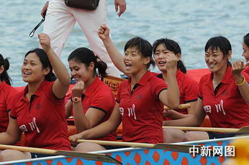 組圖:農(nóng)運(yùn)會(huì)龍舟競速 四川女隊(duì)笑容燦爛