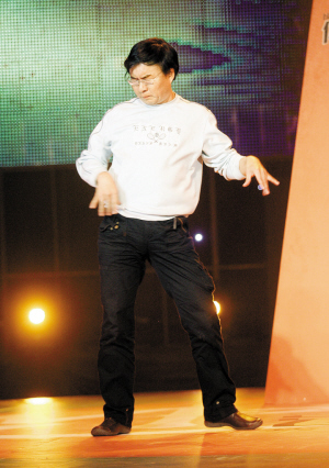 圖:名嘴韓喬生全國(guó)大學(xué)街舞賽上秀舞技