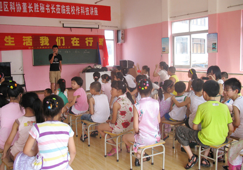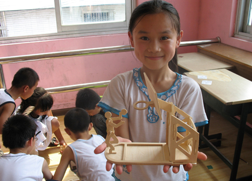 下午的時間交給了孩子們。他們先要無圖紙搭積木,即僅憑借想象力搭疊積木!安粦嵅粏,不悱不發(fā)”,在關鍵時刻,隊長將示意圖紙發(fā)給了孩子們;顒咏Y束時,還是有些孩子沒有搭出成品。隊員就鼓勵他們再接再厲。最后,自由活動的時間到了,有的孩子玩“老鷹捉小雞”,有的孩子跟著女老師學起了舞蹈……