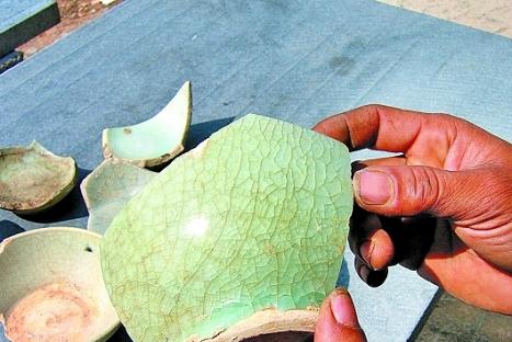 昨日(3日)上午,普查小組來到水庫,只見這里依山傍水,盛產(chǎn)高嶺土和釉水等礦產(chǎn)資源,具備燒制青瓷的條件。在水庫原儲水處發(fā)現(xiàn)了大量陶瓷片,堆積層厚達(dá)1至5米。普查組專家隨手拿起一件碎瓷,碗底有一個明顯的乳心。專家稱,這是明顯的元代青瓷特色。