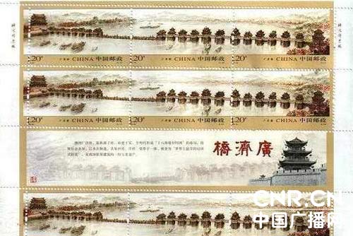 《廣濟(jì)橋》特種郵票11月16日正式發(fā)行。《廣濟(jì)橋》特種郵票是有史以來(lái)中國(guó)郵政首次專(zhuān)門(mén)為粵東地區(qū)發(fā)行的地方題材特種郵票;也是新世紀(jì)以來(lái),繼《深圳經(jīng)濟(jì)特區(qū)建設(shè)》、《丹霞山》、《石灣陶瓷》之后,中國(guó)郵政專(zhuān)門(mén)為廣東省發(fā)行的第四套地方題材特種郵票。這套郵票的成功發(fā)行,是潮州市委、市政府貫徹、落實(shí)汪洋書(shū)記在粵東地區(qū)現(xiàn)場(chǎng)會(huì)上要求潮州大力推進(jìn)經(jīng)濟(jì)與文化融合,實(shí)現(xiàn)跨越式發(fā)展的會(huì)議精神的有力舉措。