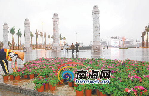 近一個(gè)星期來,儋州城區(qū)張燈結(jié)彩、百花綻放喜迎歡樂節(jié),城區(qū)內(nèi)懸掛大紅燈籠5000余個(gè)、燈桿廣告旗2000余幅,擺放鮮花15萬盆。(李關(guān)平 黃遠(yuǎn)舶 郭樹護(hù))