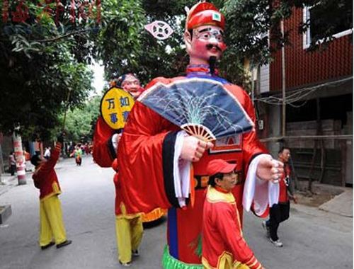 從聚寶街路角的黃帝宮出發(fā),五六百人的出巡隊(duì)伍沿著橫街、青龍宮、斗門頭、車橋頭、水上派出所、聚寶新城等線路一路走來,最后經(jīng)中山南路、天后宮、聚寶街等路線,再回到黃帝宮。一路走來,隊(duì)伍吹拉彈唱,富有閩南特色的有驢子探親、立高人、高蹺表演等,連經(jīng)過的小車司機(jī)也停下觀看。另外,隊(duì)伍里還有11匹馬,模仿大禹坐馬車出行的陣容。