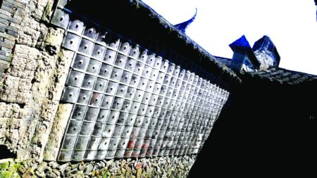 記者還注意到,寨子內(nèi)還有不少機關(guān),城墻下半部有幾十個小洞,用來安放照明燈具便于夜間行走。在城墻的上半部,每隔十幾米就有一個外小內(nèi)大的喇叭形梯形窗戶,站在窗前,可以清楚觀察外面動靜,而屋外看不到里面的情況。
