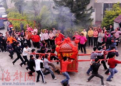 昨天(14日)是正月廿九,媽祖添香日。上午9點(diǎn),泉州東海埔村,媽祖巡香大典再度上演。埔女盤頭插花,戴著丁香耳墜,穿著大裾衫、寬腳褲,形成了一道獨(dú)特的風(fēng)景。村民們抬著神像沖過火堆,避災(zāi)祈福。這項(xiàng)民俗活動(dòng)也吸引了福州、廈門等地的很多攝影師前來拍攝。(田米 文/圖)