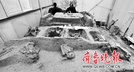 12日,高青陳莊西周遺址發(fā)掘?qū)<易勽叱晒侣劙l(fā)布會(huì)在濟(jì)南舉行,陳莊西周遺址發(fā)現(xiàn)罕見(jiàn)的“直立跪伏”陪葬馬匹,這在國(guó)內(nèi)還是第一次。