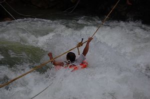 然而,正當(dāng)救援人員準(zhǔn)備營救最后一名被困男子時,發(fā)現(xiàn)他的雙腳被卡在了河底的兩塊石頭間,無法移動。此時河水已經(jīng)快漫過該男子的頸部。
