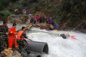中新網(wǎng)麗水7月9日電(記者 江耘 實(shí)習(xí)生 陳佳 通訊員 李正坤)今天中午12時許,浙江省麗水市龍泉錦溪鎮(zhèn)肖莊村三名村民在路過一座臨時搭建的簡易木橋時,木橋被突如其來的洪水沖翻,三人隨即被大水沖走,一人幸免,兩人死亡。