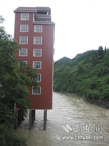 7月13日,有網(wǎng)友向荊楚網(wǎng)報(bào)料臺反映,恩施州鶴峰縣鐵爐鄉(xiāng)有人把房子建到了河道中,眼下正是主汛期,看著十分揪心。從該網(wǎng)友發(fā)來的照片上可以看到,一幢7層的樓房直接建在了河道當(dāng)中,與周圍兩棟4層白色建筑形成了鮮明的對比,顯得十分突兀。照片里,湍急的河水急速地沖刷著這棟違建房的支柱,水流幾乎沖到了房子的底板上。