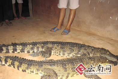 據(jù)西雙版納自然保護(hù)區(qū)勐臘派出所的所長代旭介紹,他們趕到現(xiàn)場后,發(fā)現(xiàn)這兩條兩米多長的大鱷魚正趴在李明周的家中,沒有人敢靠近。檢查后也沒有什么外傷,便將其帶回派出所暫時看管。但是,兩條鱷魚是不是中國原產(chǎn)鱷魚,為什么會出現(xiàn)在小磨公路的隧道中?警方表示還在調(diào)查。