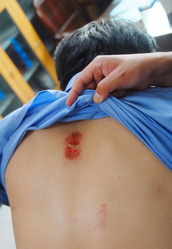 據(jù)記者了解,當(dāng)日8點(diǎn)左右,十幾名傳銷不法分子糾集在龍崗工商分局,索要他們之前被查扣的人員名單以及資料,當(dāng)工商執(zhí)法人員表示這些被查扣的資料要進(jìn)行備案存儲(chǔ)不能歸還后,隨即遭到了傳銷分子毆打。記者在現(xiàn)場(chǎng)看到龍崗分局4人受傷,其中一名執(zhí)法人員左手被磚頭砸傷,一人左眼框被拳擊致骨裂,還有執(zhí)法人員身上多處被咬傷。據(jù)了解,早在當(dāng)天上午,這些傳銷分子便已在上班途中包圍了龍崗分局一些執(zhí)法人員,公開威脅稱知道其家庭住址,并尾隨其后來(lái)到單位,氣焰極其囂張。后經(jīng)報(bào)案,民警趕至現(xiàn)場(chǎng),將沒有來(lái)得及逃脫的2名不法分子樊某某,黃某某現(xiàn)場(chǎng)抓獲,其他人均已逃跑,現(xiàn)場(chǎng)傳銷分子能夠確定的有7男1女。