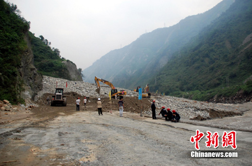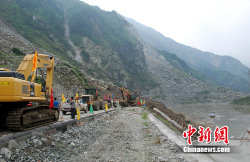 截至16日8時(shí)30分,已清理滑坡體2萬(wàn)方,預(yù)計(jì)第一處塌方路段今日17時(shí)可打通便道,老虎嘴至映秀段7天左右打通便道。