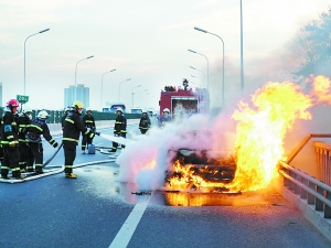 消防員趕到時(shí),火勢(shì)正處于猛烈燃燒階段,就在大家準(zhǔn)備撲救之時(shí),捷達(dá)車的前輪發(fā)生爆炸,鋼圈被震至橋下的河中,緊接著,油箱又發(fā)生了爆炸,將車門玻璃震碎,泄漏的油著火將整輛車包圍。
