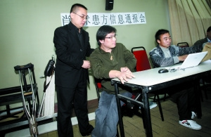 昨日上午9時30分,記者到達(dá)北人澤洋大廈時,正好遇見前來參加信息通報會的患者代表。其中一名戴著眼鏡的青年男子坐在輪椅上,在病友的幫助下艱難地上臺階。另一名拄著雙拐的矮個男子緩慢地向前挪動,每人手上都拿著一份當(dāng)天的北京晨報。10月10日,方舟子和方玄昌被襲案閃電開庭并宣判后,昨日本報以《肖傳國被判拘役5個半月》為題進(jìn)行了報道。