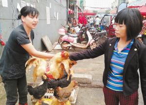 “商販們急得沒辦法,改行賣蔬菜、賣魚!倍兆犹良Q(mào)市場相關(guān)負責(zé)人介紹,以前他們批發(fā)兼零售,平均日成交活雞約1.2萬只,目前一天成交量才一兩千只。不過這兩天一天比一天多,但要恢復(fù)到過去的水平,估計還要一個月時間。