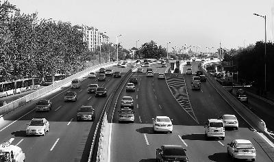 11月3日單雙號限行期間,早高峰時段,二環(huán)路上車流不多 攝/法制晚報記者 楊益 曹博遠(yuǎn)