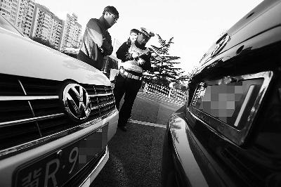 ▲民警正對闖限行的司機進行處罰 攝/法制晚報記者 楊益