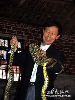 10月16日,本報(bào)(注:江南都市報(bào))記者赴宜春向蛇王老黃拜師學(xué)藝,既感受了隨蛇王體驗(yàn)抓毒蛇時(shí)的心驚膽戰(zhàn),也聽(tīng)到了蛇王驚心動(dòng)魄的歷險(xiǎn)故事。