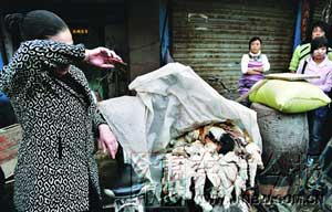 24日清早,祿老太像往常一樣到慶豐市場(chǎng)買菜,發(fā)現(xiàn)這個(gè)市場(chǎng)有人在賣寵物狗。讓她吃驚的是,賣出的狗不是給人養(yǎng)的,而是準(zhǔn)備送上餐桌做菜。昨天,得知消息的寵物保護(hù)協(xié)會(huì),帶領(lǐng)眾多愛(ài)狗人士到農(nóng)貿(mào)市場(chǎng)討說(shuō)法。