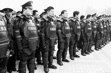 10月27日,近千名執(zhí)法隊員聚集綠城廣場,其中站著一些身著“盔甲”的“防暴警察”,他們就是各區(qū)負責查處非法養(yǎng)犬的專業(yè)執(zhí)法隊員。