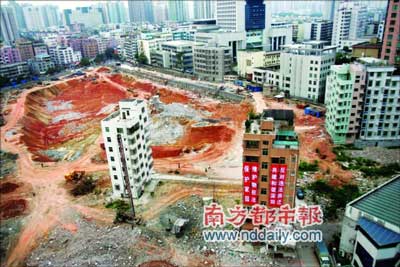 昨日,記者在施工現(xiàn)場看到,蔡珠祥夫婦的樓房基本已拆除完畢。剩下兩棟孤樓四周均已開始施工開挖地基。楊先生說,他與開發(fā)商基本達成一致意見,雙方有望最終通過協(xié)商解決此事。蔡屋圍最后的釘子戶可能會是張女士家。