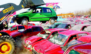 當(dāng)天,記者在銷毀現(xiàn)場看到,113輛等待銷毀的違規(guī)車輛列成4排,車輛中以夏利出租轎車居多。11時(shí)30分,在市城市交通局、烏魯木齊市客運(yùn)統(tǒng)管辦相關(guān)領(lǐng)導(dǎo)的監(jiān)督下,一輛重型鏟車的鐵爪逐一砸向非法營運(yùn)車輛,頃刻間車輛被壓癟成為一團(tuán)廢鐵,不到一小時(shí),113輛非法營運(yùn)車被全部銷毀。