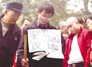 什么樣的乞丐,竟擁有“粉絲”?出現(xiàn)在記者眼前的是一個(gè)年輕男子:1.65米個(gè)頭,穿件灰撲撲外衣,鼻梁上架著眼鏡,右手杵根竹拐棍,左手拿《增廣賢文》,念念有詞。