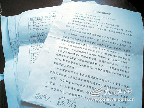 11月7日,徐金香的兒子鐘擁軍告訴記者,他們親屬對于這張《代位賠償協(xié)議》非常不滿。因為當(dāng)鐘履玲帶著賠償協(xié)議和16萬多的賠償金回到九江后,親屬們拿到協(xié)議書一看,發(fā)現(xiàn)了讓人不滿的條款。