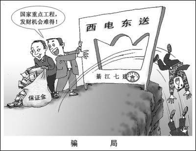重慶市綦江縣兩個(gè)有犯罪前科、只有小學(xué)和初中文化程度的人,合伙編造了一個(gè)彌天大謊:要搞一個(gè)和北京2008年奧運(yùn)會(huì)配套的國(guó)家重點(diǎn)工程——“西電東送”。就是這樣一個(gè)彌天大謊,竟然在綦江縣13個(gè)鄉(xiāng)鎮(zhèn)大行其道,眾多的老板、農(nóng)民上當(dāng)受騙,造成損失共計(jì)800余萬(wàn)元。本報(bào)(檢察日?qǐng)?bào))2007年5月9日對(duì)此案作過(guò)報(bào)道后,日前,最高人民檢察院影視中心《法治中國(guó)·中國(guó)法治時(shí)空》電視節(jié)目組記者又赴綦江深入采訪辦案檢察官及涉案人員,調(diào)查該案發(fā)生的深層次原因。結(jié)果發(fā)現(xiàn):當(dāng)?shù)匾患覈?guó)有企業(yè)、一名政府機(jī)關(guān)干部,還有一些鄉(xiāng)鎮(zhèn)、村干部,不僅是受騙者,而且在這場(chǎng)騙局中還充當(dāng)了極不光彩的角色——受利益驅(qū)動(dòng),在無(wú)意中為彌天大謊披上了華裝。