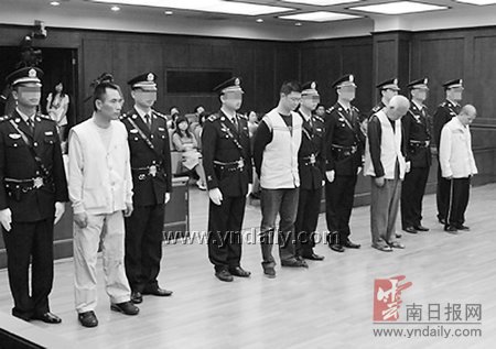 6月26日,昆明中院對(duì)臺(tái)灣省人鐘萬億販毒案依法作出一審宣判,以走私、販賣、運(yùn)輸毒品罪判處主犯鐘萬億死刑,剝奪政治權(quán)利終身,并處沒收個(gè)人全部財(cái)產(chǎn);判處被告人鐘溪洲死刑,緩期兩年執(zhí)行;判處被告人王俊鵬有期徒刑15年;判處被告人劉文嵩有期徒刑15年。