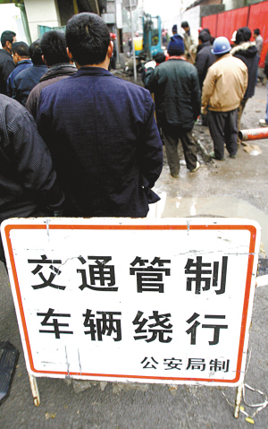 路邊塌陷現(xiàn)場,前日的大坑面積已進(jìn)一步擴(kuò)大,深度超過2米。來自市自來水公司、北京市公用設(shè)施搶險(xiǎn)大隊(duì)的工人和網(wǎng)通20多名工作人員,一邊研究地下的結(jié)構(gòu)和線路,一邊進(jìn)行搶修。