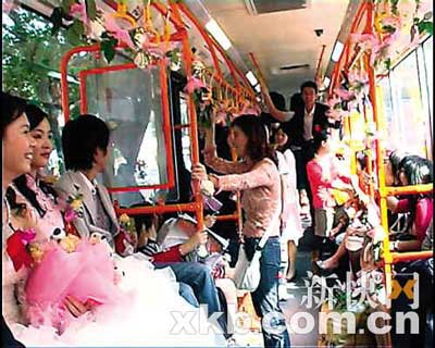 “一開(kāi)始打算用寶馬當(dāng)花車(chē),但如果只租三四輛寶馬就不夠氣勢(shì)了,租七八輛又太貴,所以最后決定用一部超長(zhǎng)的車(chē)來(lái)當(dāng)花車(chē),這樣既有氣勢(shì)又可省錢(qián)!辟囅壬嬖V記者,他把地面上能用的交通工具都想了個(gè)遍,后來(lái)經(jīng)過(guò)自家門(mén)口的同德圍車(chē)站時(shí),突然發(fā)現(xiàn)215路公交車(chē)既長(zhǎng)又寬,完全符合他的設(shè)想,因此定下來(lái)由它做花車(chē)!斑@樣我和新娘,還有一幫朋友都可以聚在車(chē)?yán)锿,好像舉辦一個(gè)結(jié)婚PAR-TY,很過(guò)癮!辟囅壬f(shuō)。