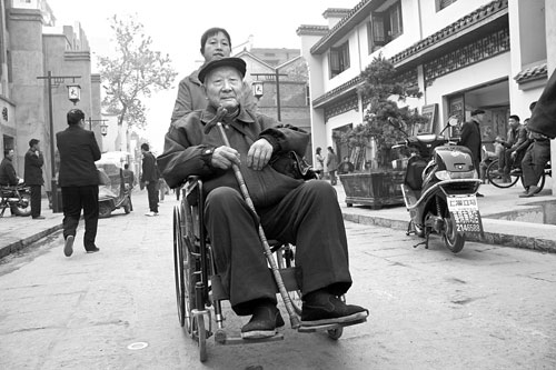 “盧爹,今天大盤怎么樣?”當(dāng)老人結(jié)束一天的看盤,由他的保姆推著輪椅回到太平街時,一路上都有人不斷地笑著向他詢問,而他只是呵呵笑著點(diǎn)頭示意。(記者龔磊文/圖)