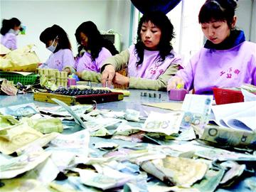 乘坐公車交,有市民用殘幣、假幣甚至冥幣當(dāng)“車費”。昨日,南充市公交公司收銀中心清理出來的這些廢幣“堆積如山”。