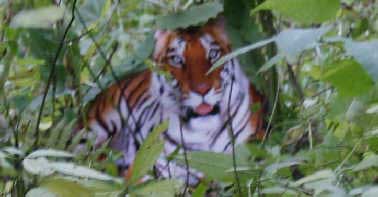 (第9張照片16:39:59):朱巨龍:“這張照片中的老虎眼睛明顯放光,光亮甚至透過了前方的葉子。”