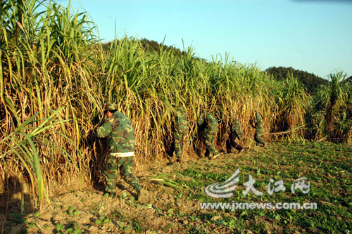 昨日下午3時(shí)許,由數(shù)十名德興市武警戰(zhàn)士、上饒市特警、德興公安民警以及民兵等人員組成的搜捕隊(duì)再一次來到付家墩,他們對(duì)付家墩村村后的百畝甘蔗進(jìn)行了全面搜查。