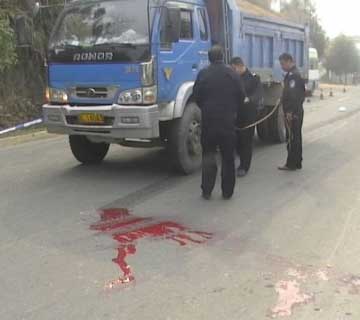 當日上午10時15分,一輛牌照為鄂LA5577的中型自卸車滿載一車河砂向執(zhí)勤點駛來,副中隊長方聲白即上前打手勢,指揮車輛靠邊停車。當該車剛停穩(wěn)接受檢查時,一輛牌照為鄂L14043的中型自卸貨車滿載一車河砂,從洪港方向快速駛向方聲白,瞬間將方聲白撞倒。貨車前左輪輾壓著方聲白襠部向前推行,公路上當即留下一條26.2米長的血肉拖痕。