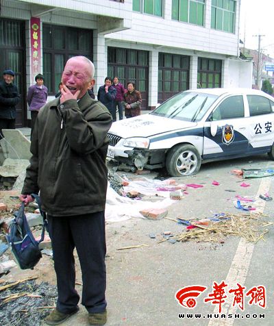 濤濤的雙親常年在外務(wù)工,他一直和爺爺奶奶生活,每天放學(xué)后爺爺都會(huì)去路上接他。12月3日下午3時(shí)許,王興舉老人朝孫子回家的方向趕去時(shí),一輛警車從316國(guó)道由西向東駛過(guò),汽車駛出幾十米后突然斜著沖到對(duì)面車道,并撞在馬路旁的花壇上。“太可怕了!”當(dāng)時(shí)正在馬路對(duì)面的村民王新強(qiáng)說(shuō):“警車撞到花壇后便一連側(cè)翻了3個(gè)跟頭,才落在約十余米以外的路邊。”這時(shí),他才發(fā)現(xiàn)背著書包沿馬路邊回家的濤濤已倒在血泊里。