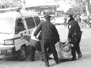 110民警趕到現(xiàn)場后,一位民警伸手探小偷呼吸和摸其心跳,都很正常,臉色也沒異樣。“我們都認(rèn)識(shí)他,他是個(gè)慣偷,常在這一帶的商鋪偷東西!睅酌櫩驮谝慌哉f。但無論民警怎么勸說,小偷就是不肯起來,一直閉著眼睛裝死。