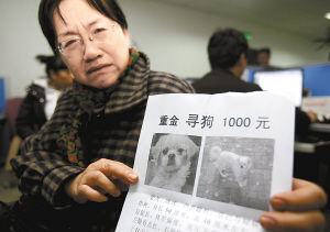 “咪咪很乖,晚上都是我老伴摟著它睡。我們一起生活了兩年零三個(gè)月,已經(jīng)把它當(dāng)家人了。狗丟了以后,我女兒和老伴哭了好多次。女兒為此都不跟我說(shuō)話(huà)了。它是京巴和蝴蝶犬的串兒,一點(diǎn)也不值錢(qián),但這種感情難以割舍!